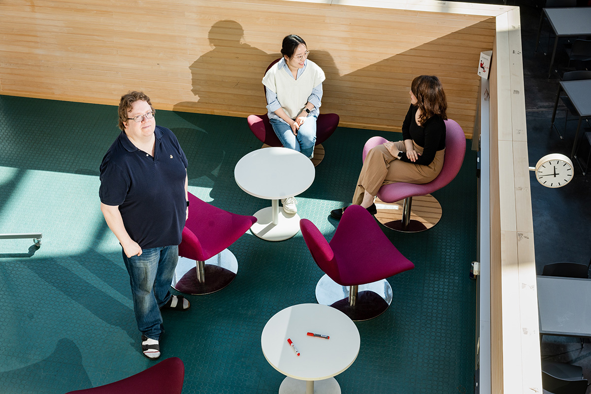 | Janne Lindqvistin tutkimusaiheet ovat monialaisia. Kollegoiden joukossa on myös psykologeja ja sosiologeja. Kuva: Ville Maali |