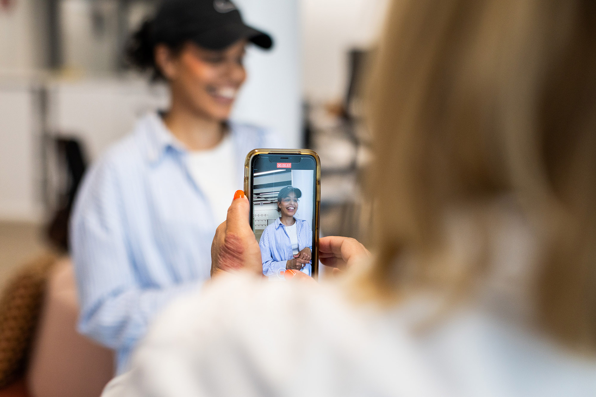 Jussilan kollega Rebekka Bwanga-Koba on asiakasneuvoja ja sometiimin jäsen Verohallinnossa. Kuvassa tehdään testiversiota Verokampukseen liittyvistä some-sisällöistä. Verokampus on nuorille tarkoitettu sivusto, jossa voi tutustua verotukseen, jos menee vaikkapa ensimmäisiä kertoja kesätöihin.