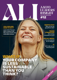 By ordering the magazine you will accept that your name and address will be stored for the Aalto Leaders' Insight Magazine mailing list at Aalto University Executive Education Ltd. See our Privacy Policy.