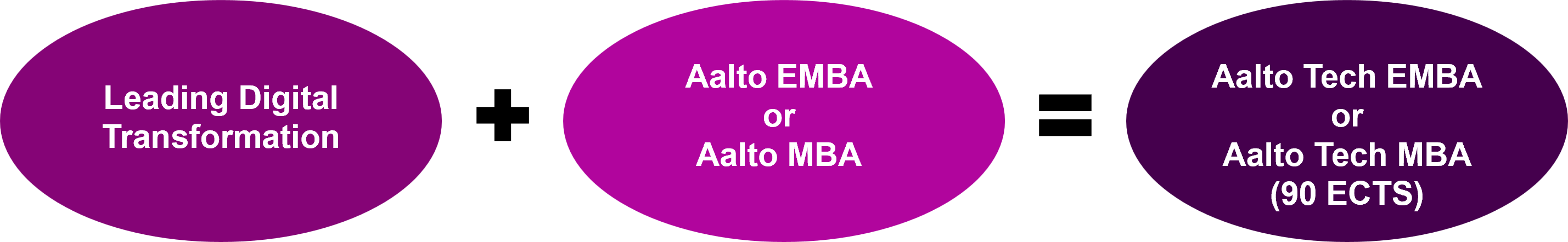 The Aalto Tech MBA and Aalto Tech Executive MBA programs consist of two parts: first, the Leading Digital Transformation, and second, the Aalto MBA or Aalto EMBA program.
