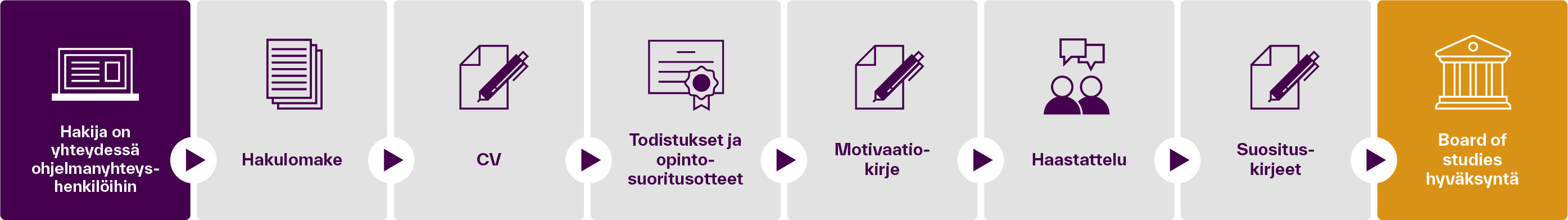 - Board of Studies arvioi hakemuksen ja tekee lopullisen hyväksymispäätöksen