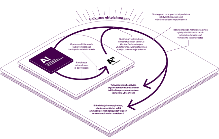 Maailma uudistuu sellaista vauhtia, ettei kukaan meistä voi tietää, mitä tietoja ja taitoja parin vuoden päästä tarvitaan. Ammatit, työnkuvat ja työn tekemisen tavat muuttuvat ja työ ja opiskelu limittyvät koko elämän laajuiseksi oppimispoluksi. Siirrymme putkimaisesta urakehitysmallista elinikäisen oppimisen aaltomaiseen tai monihaaraiseen malliin, jossa oppimista tapahtuu läpi elämän. Aalto-yliopistossa et jää yksin. Me toimimme oppaanasi ja autamme sinua tunnistamaan oppimistarpeesi, jotta osaamisesi pysyy aina askeleen edellä.